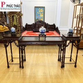 Với kiểu dáng thanh thoát nhưng chắc chắn, kết hợp cùng hệ thống chạm khắc giàu ý nghĩa, bộ bàn đôn không chỉ là nơi bày trí đồ vật mà còn mang lại giá trị phong thủy, giúp không gian sống trở nên trang nghiêm, sang trọng và thu hút tài lộc.