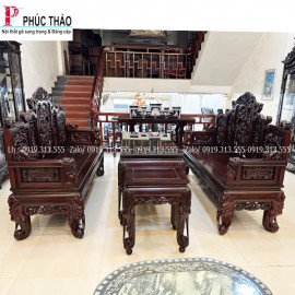 Bộ trường kỷ ngũ lân chân voi gỗ gụ là sự kết tinh hoàn hảo giữa giá trị thẩm mỹ truyền thống và kỹ thuật chế tác đỉnh cao, mang đến vẻ đẹp bề thế, sang trọng cho không gian phòng khách hoặc nhà thờ.